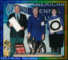 Al Driver won the title of Best Brut Bitch Ch. Heike's Ginger Blue, at the FBDCA