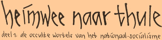 werd door Freiherr Rudolf von Sebottendorf(1875-1945) te Mün- chen de "Thule Orden" opgericht. Deze geheime loge moest dienst doen als de Zuidduitse afdeling van de vijf jaar eerder gestichte "Germa- nenorden". Sebottendorf, geboren Adam Rudolf Glauer, was zojuist te- ruggekeerd uit het Midden-Oosten. alwaar hij zich intensief had bezig gehouden met het bestuderen van geheime wetenschappen. Hij was gefas- cineerd door de nummerologische achtergronden van de Pyramide van Cheops, de Joods mystieke Kabbala, alchemistische teksten. astrologie en de leer der Rozekruisers en Vrijmetselaars. Er werd door Sebottendorf min of meer openlijk voor de buitenste ring van de Thule Orden. de "Thule Gesellschaft" geworven. Door middel van advertenties in verschillende bladen en kranten werden Duitsers opge- roepen zich aan te sluiten bij de "Völkische Loge". Belangstellenden kregen het aanmeldingsfomulier toegestuurd waarin te lezen stond dat indien men tot do "Geheimbund" wilde toetreden men eerst de "Blutbe- kenntnis" diende te tekenen. Deze luidde als volgt: "Unterzeichneter versichert nach bestem Wissen und Gewissen dass in seinen und seiner Frau Adern kein jüdisches oder farbiges Blut fliesse und daas sich unter den Vorfahren auch keine Angehörigen der farbigen Rassen befin- den." Bij retournering van de verklaring met vragenlijst moest men een goed gelijkende foto van zichzelf bijsluiten. Deze werd bekeken met het oog op de "rassische Reinheit" van de kandidaat. Was alles in orde bevonden, dan ontving men een uitnodiging om een bijeenkomst van de loge bij te wonen. Na een proeftijd van ongeveer een jaar volgde de opname in de "Freundschaftsgrad". Tijdens deze feestelijke inwij- ding, waarbij ieder lid een bronzen speld met daarop het door twee speren doorstoken hakenkruis droeg, eiste men van-de kandidaat dat hij absolute trouw zou zweren aan de loge-meester. Ook vrouwen en meisjes werden tot deze graad toegelaten. De inwijdingsplechtigheid symboliseerde de-terugkeer van de verdwaalde Ariër naar het ware Ger- maanse heiligdom. Bijeenkomsten vonden plaats in de "Thule-zalen" van het hotel "Vier- jahreszeiten" in de Beierse hoofdstad. Het zinnebeeld van de Thule Gesellschaft, het hakenkruis met zwaard naar Oudgermaans model, sier- de de wanden. Tijdens deze samenkomsten, vooraf gegaan door openings- rituelen, sprak men over de Germaanse mythologie, de runen (de oude Germaanse heilige tekens), rassenkunde en vooral over het Joods-kom- |