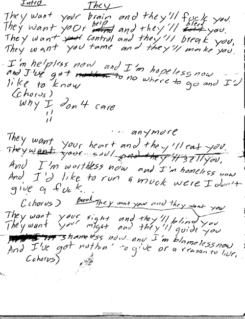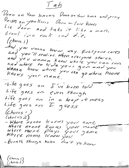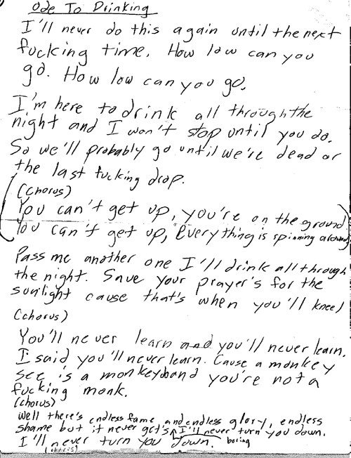 Most of the songs below are not being played anymore, but what the fuck, we'll leave the lyrics on here in case anyone wants to steal them, feel free.