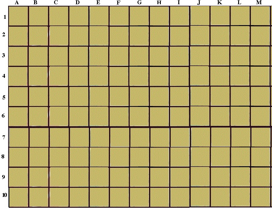 Battles are fought out as plotted movements/actions (for those who have played board games with such features). To indicate the square imagine across the top from left to right counts of letters A, B, C, D, etc. Down from top to bottom, numbers 1,2,3,4,5. Thus squares can be identified and B5 or C2. Note the battleboard can be shifted up, down , right or left as the battle moves, or even expanded if gets wider in its extent. Line of sight is measured from the center of each square. Note that terrain features that effect line of sight and movement may be added to a battleboard. A character may move in a combat phase, a number of squares equal to 1/2 his movement rate. For those with a movement rate of 11 or less, movement takes 1 segment per square. For those with movement rates of 12 or more, bonus squares are added to the end of movement, such that a movement of 12 allows 2 squares to be traversed in the 5th segment, while a movement of 14 allows 2 squares to be traversed in the 4th and 5th segment. Movement rates above 21 will allow 3 squares to be traversed in the pattern indicated above. Movement rates above 31 will allow 4 squares to be traversed, and so forth. These higher movement rates are useful if characters are mounted, hasted, etc. Note that other actions will limit how much a character will move in a combat phase. With a movement rate of 12 ( Base rate of humans, ishandeshee, kiresheena, minotaurs, Haz in sunlight) you can move up to 6 squares a combat phase but only if you do nothing but move. At that speed you use less than 5 segments of movement, your rate is 1 square per segment of movement of the combat phase. Suppose one is hasted, you can move 2 squares per segment of a combat phase plus 3 squares in the 4th and 5th segments of movement for a maximum of 12 squares per combat phase. If you only say use 3 segments of such enchanted movement you could move 6 squares, if you use 4 segments you could move 9 squares and if you use 5 segments you could move 12 squares.