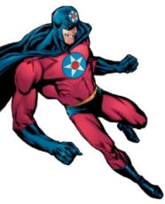 In 1969, along with other members of S.M.A.S.H., American Crusader found himself trapped above the Earth in suspended animation by an alien menace. Thirty years later Tom Strange with the help of his counterpart, Tom Strong, freed American Crusader and the other science heroes. With their combine might they defeat the alien menace. Like the others, Masters found himself disconnected from the current time period and had difficulty adjusting. S.M.A.S.H. soon disbanded afterwards and Masters began drinking heavily. Three years later a new threat arose and the government called in former members of S.M.A.S.H. for help. Masters was one of them that answered the call. While heading to the nexus of an energy field that made all technology useless, Masters was one of the heroes that lost their powers. He fell to the ground and was badly hurt. Determining the field affected science based heroes; an unconscious Masters was one of the team members left behind while others continued on. The threat was discovered to be the one-time hero Mystico. The combine might of the science heroes forced Mystico to end his god-like plans. With the crisis averted Archie Masters is now dealing with his alcoholism. S.M.A.S.H. has reformed and Masters again serves the team as the American Crusader. Powers: Due to the contact with the cyclotron, American Crusader has super-strength, super-speed, invulnerability that can withstand a bomb blast and the ability to fly. American Crusader also has the ability to create powerful electromagnetic burst. |