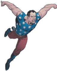 Three years later a new threat arose and the government called in former members of S.M.A.S.H. for help. Drew was one of them that answered the call. While heading to the nexus of energy field that made all technology useless, some of Drew’s teammates lost their powers. It was determined the expanding energy field affected science based heroes. With Scarab and himself being magical based heroes, they proceeded on without the others. During their investigation they discover DR. X had killed the American Eagle and Eaglet. Dr. X escapes before they could do anything. The threat was revealed to be the one-time hero Mystico, who was forced to end his god-like plans. With the crisis averted The Liberator joined the newly assembled S.M.A.S.H. He continues to be a valued member to this day. Powers: By imbibing a secret chemical potion, once known by the ancient Egyptians as Lamesis, The Liberator gains super-human strength and speed. |