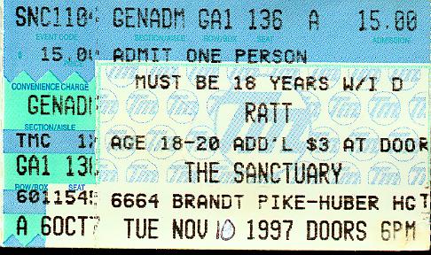 | This was an okay concert. For where it was, it was very good. The Sanctuary is a decent sized club out in Huber Heights, Ohio. MY brother saw Ratt in the 80s, and thought I should see 'em, too. Well, my brother LOOKED like he was old enough to be my dad... Or not, but that's okay. The opening band was VERY good. The band was Hair Of The |
