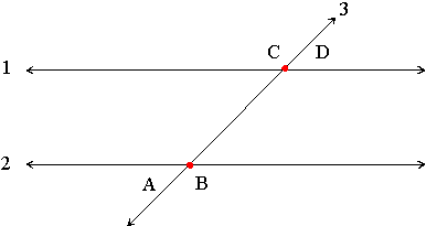 | Angle A and angle C are corresponding angles, angle A and angle D are alternate exterior angles, the angel that is vertical to angle B and the angle that is vertical to angle D are the alterante interior angles. | ||||||||||