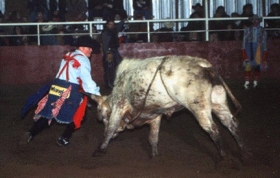 This is a page that I will post the pictures that you guys send me on. This first pic was sent to me by Sam Stamate, who I apologize to for not having any pics of bullfighters on my web site. After finals I will try to remedy this, but till then here is the first bullfighting pic on my site and Sam's words to describe bullfighting.