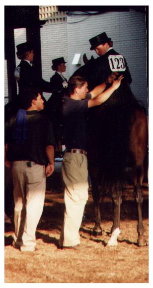 In the warm-up ring, World's Championship Horse Show, Louisville, KY, 1999.