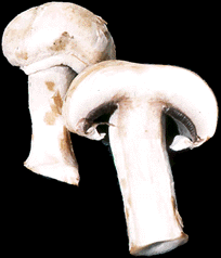 | This is a cross-section of the Agaricus bisporous. Notice that the gills are dark brown and that they are not attached to the stalk. The A. bisporous is the most cultivated mushroom in the world.* |