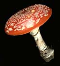 | Right ---------------------------> The beautiful, but poisonous Amanita muscaria is probably one of the most startling looking mushrooms I have ever seen. (Of course, there are plenty more! I just like the color!) It is more commonly known as the Fly agaric because people used to grind it up and mix it with sugar and water to stupefy houseflies.* |