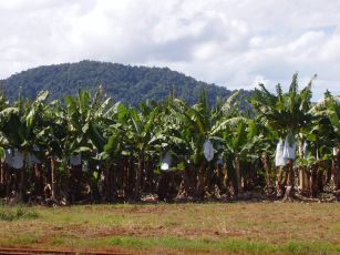 Mile apon mile of banana's with bags on the banana's to keep the fruit bats from eating them - pesky little devils!