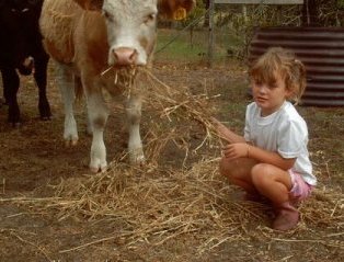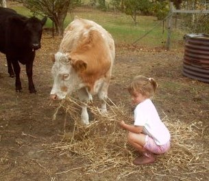 This is Stella, age 5, feeding the cows.