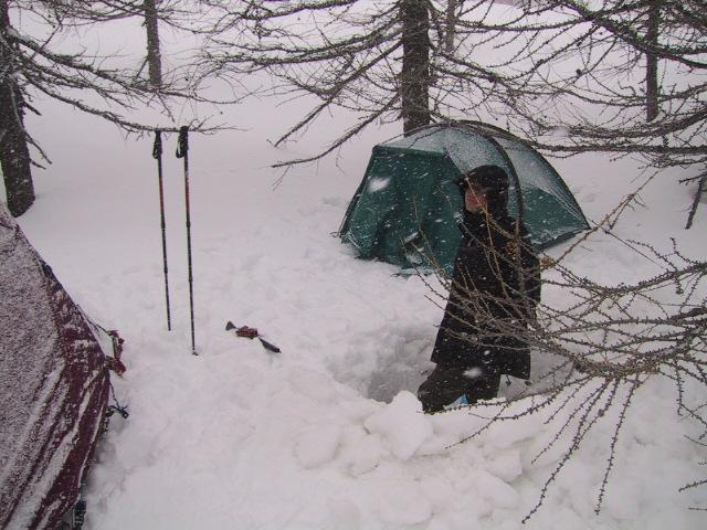 Our camp in the valley below the Zmutten Glacier. I would like to take this moment to comment on the fact that I do not actually enjoy camping in the snow. I would much rather visit these places when the temperature is not sub-zero, but there is no guarentee that I will actually have any free time to travel during the summer. | ![]() |