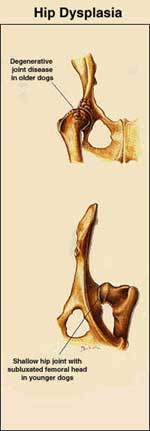 unstable hip joint. As the affected dog ages, the hips gradually become