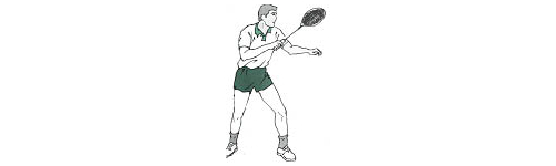 接發球的站位和姿勢: 單打站位一般是在離發球線1.5米處。站在右發球區靠近中線的位置;在左發球區則站在中間的位置。這樣站的主要是防備對方直接進攻反手部位。一般左腳在前,右腳在後,雙腳微屈,收腹含胸,身體重心放在前腳上,後腳腳跟稍抬起。身體半側向球網,球拍舉在身前,雙眼注視對方。如圖: 雙打站位由於雙打發球區比單打發球區短0.76米,發高遠球易被對方扣殺,所以雙打發球多以發網前球為主。接發球時要站在靠近前發球線的地方。雙打接發球準備姿勢和單打姿勢基本相同。只是身體前傾較大,身體重心可前可後,球拍舉得高些,在球飛行到網上最高點時擊球,爭取主動。但是注意對方在右場區發平快球突襲反手部位。 |