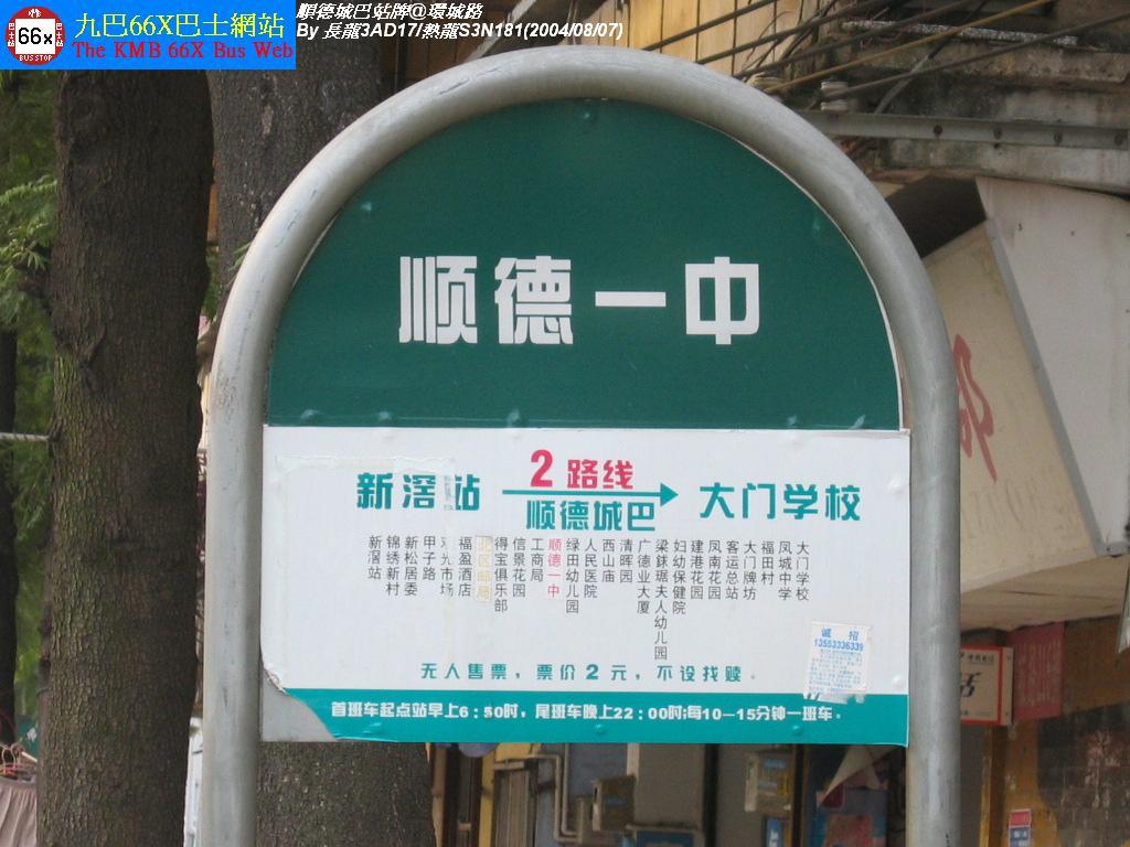 上圖:順德城巴的站牌,攝於環城路(大良區)(請按圖放大)(2004/08/07)