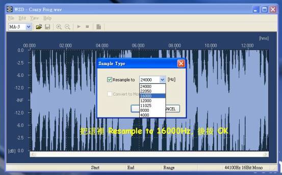 3. 於 Resample to, 選擇 16000 Hz