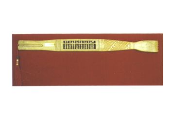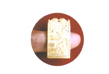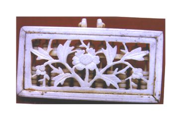 明代象牙11檔袖珍算盤,背雕透花卉。 |