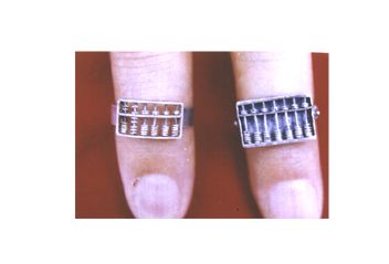 銀鐲銀飾物上的算盤。 |