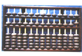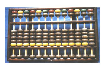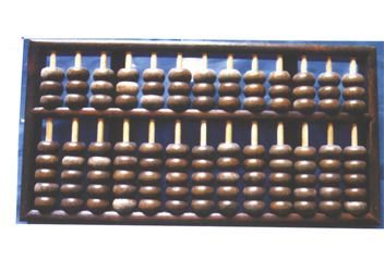 人民珠算盤。木制三、五、二圓彩珠雙梁13檔正負數算盤 |