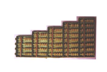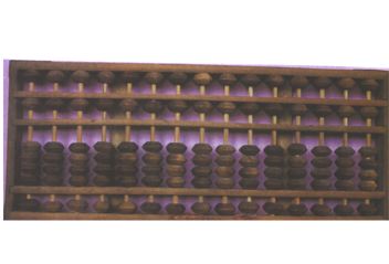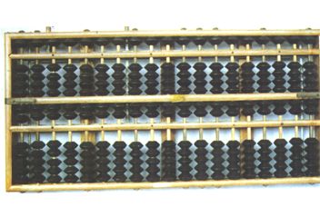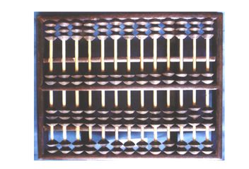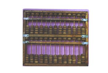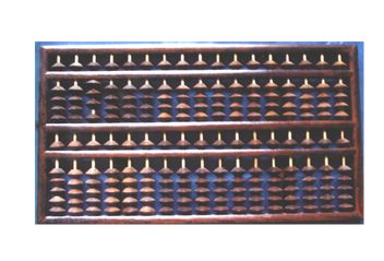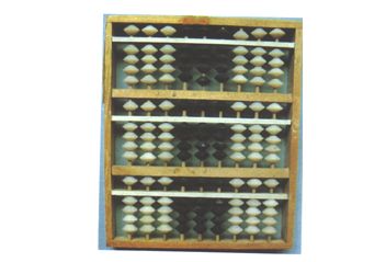 多功能算盤。木框一、一、一、四塑菱色珠,三梁9檔算盤。 |