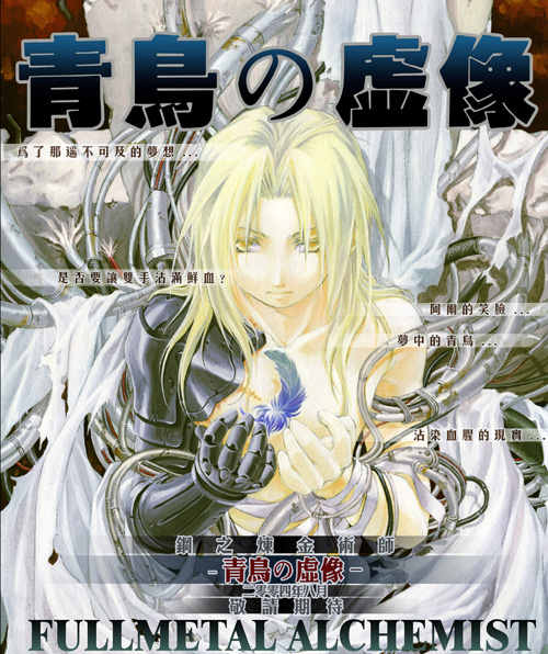 大約是零四年四月左右,網絡上出現了鋼煉同人遊戲製作的風潮,身為電腦白痴的風影當然是參與玩遊戲的部分(汗)筆者玩過的包括「青鳥之虛像」和「Phantomphobia異界」,兩者都在網絡上相當具知名度。總括而言,兩者都是出色的同人製作,不論是故事或畫風都各有特色。筆者是先玩「青鳥之虛像」的,所以就先談這個吧!