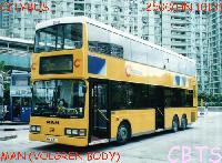 在城巴車隊內只有一輛的 24.350 NL-DD 型雙層巴士,大約在九七年加入車隊,它的車隊編號是 2500.記得當年它抵達本港時,其 Volgren 車身,給本港巴士迷非常大驚喜.眾多巴士迷都說城巴是本港最勇於試用新款車型的巴士公司.全港從未引進的 MAN 24.350 NL-DD 型巴士,其所配置的 Volgren 車身,最易識別的地方是它的落車門比一般雙層巴士偏後,順理成章地它的上落上層樓梯亦移至較後位置. 經常支援路線 5B 的 2500,筆者認為有點大才小用,如果城巴將它投放於行走青嶼幹線的「 Cityflyer 」路線上,相信可以把它的威力全面發揮. 02-10-00 華人     |