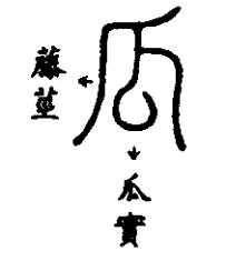 說文釋為「蓏也」就是草本植物的果實字形內像瓜實,外像藤莖 |