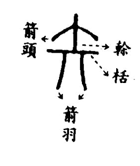 說文釋為「弓弩矢也」弩是弓的一種,用機器來放箭,所以矢是弓和弩所射的箭