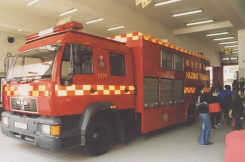 因911事件後,在2002年香港消防處引入核生化事故車,該車的設施可以處理一般的核生化事故,車內具有防化衣.此車在港只在尖沙咀消防局一部.