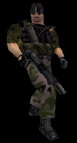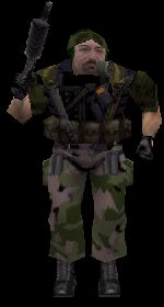 | How did I do it? Firstly I changed the urban camo to a forest one. Then I changed the heads: First is a normal head that replace the gaz mask (can't do anything about the thingy, I'm no modeller!), then there's the commander head who recieved a new beret and sunglasses to his his ugly eyes. The ski mask has half of it's mask (looks a bit crappy I know) and the cigar guy is now a light skinned dud who smokes bullets? The mp-5 is a lil' bit sharper now. |