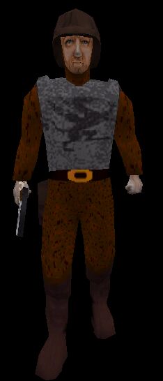 | Description: There are many mediaval themed monsters at the Weapon Workshop, so I decided to make the humans a bit mediaval too. This is the security guard of the middles ages. He where's only a plate armor and a scale helmet, and he attackes with a magical knife (?). |