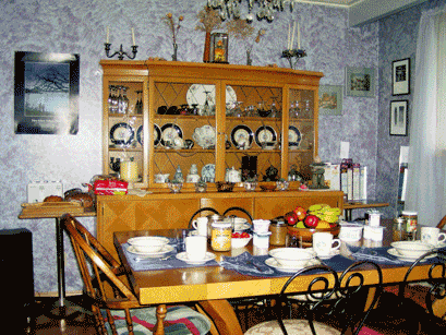 An extended continental breakfast is self served any time before 10:00am and includes homemade breads and jams, fresh fruit, cold cereals, yogurt, juice, milk, bottomless coffee or tea, and fresh healthy muffins.