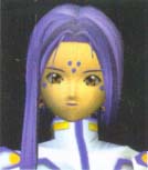 Wincing, he looked over to see a lithe fair skinned woman with lavender/blueish hair and matching eyes. Three dots decorated her forehead, one each under her eyes. She wore an extravagantly tailored white jumpsuit like outfit and smelled of sweet jasmine.