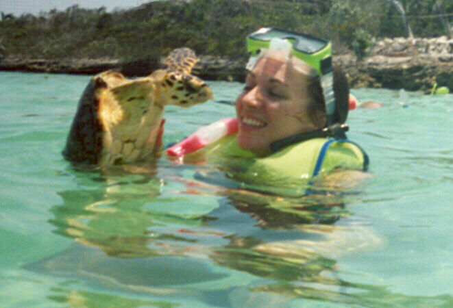 Sea turtle following me