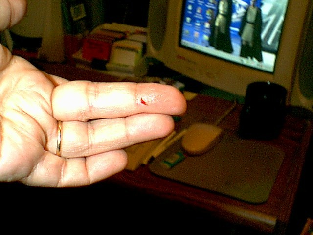| These pictures were not purposely staged. I took them because I made a mistake that anyone can make. Putting my hand in the tank while the snakes were eating.It is important that you NOT do this.Hognose bites have been documented to cause serious reactions in some individuals. |