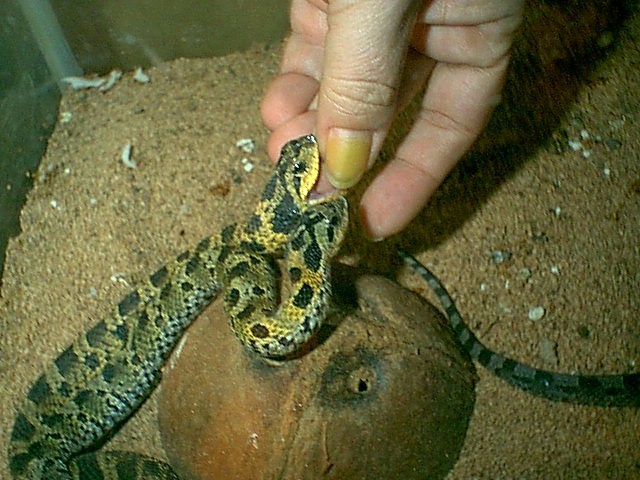 | I'm going to show you how to get bitten by a hognose-I DO NOT suggest you do this-The purpose of these photos- What NOT to do while feeding your hognose |