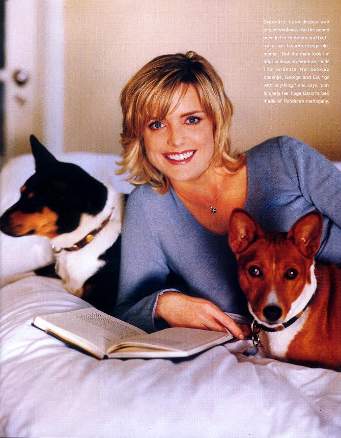 Night may have fallen in Brentwood, Calif., but deep inside her four-bedroom home Courtney Thorne-Smith is still going strong. She has neatened stacks of her favorite golf magazines, lit some guava-scented candles, and turned her attention to the pillows in a guest room. "I should have done this earlier," she says before stopping midfluff at the sight of a chewed-over dog bone in the middle of the bed. "Apparently the boys were napping in here," she says, mock-grimacing, a reference to her two barkless basenjis, George and Ed. "They make their nest wherever they want."