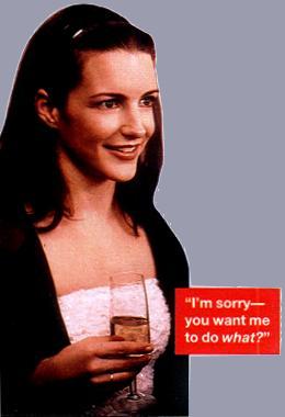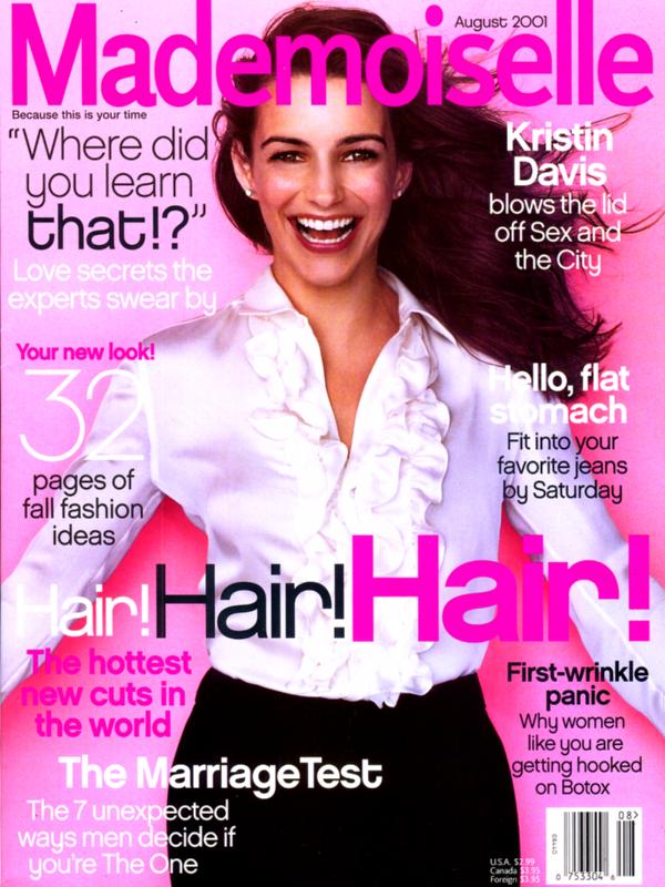 Kristin, 35, walks into the Soho Grand Hotel wearing a green Indian shirt and capris. In many ways, this former yoga instructor whose gorgeous skin is free of makeup is very un-Charlotte. In other ways, she's quite Charlotte-esque: she hosted the 2001 Revlon Run/Walk for cancer in New York City; she filmed a movie, Three Days, for the Fox Family Channel so her grandmother Flossie could see her in something that isn't dirty. At various points during our three-hour conversation, I felt like it was Charlotte herself having an egg-white omelette across from me.