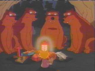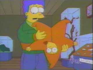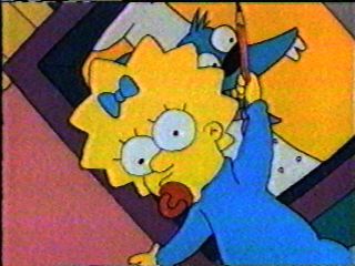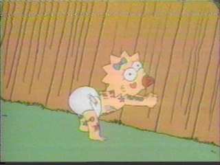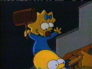 Maggie about to hit Homer with a Hammer!