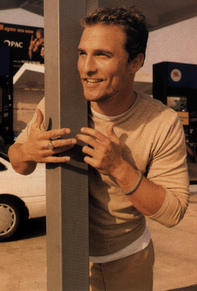 Matthew got his acting start in commercials. The director of "Dazed and Confused" discovered him in 1992 and cast him in the part of the aging stoner. Matthew was still directing student films at UTx then. Soon, Matthew caught the eyes of other Hollywood directors with his sweet Texan charm and wit, and was cast in the lead role of the sequel to "Texas Chainsaw Massacre" in 1993. (Which was released under the name "Texas Chainsaw Massacre: The Next Generation"). Soon afterwards, Matthew was cast as Drew Barrymore's cop boyfriend in "Boys on the Side" also starring Whoppi Goldberg and Mary-Louise Parker. Matthew then played a baseball player in 1994's "Angels in the Outfield", a movie about an orphan seeing angels that help The Angels. In 1995, he played the main character in a short film "Judgement".After a part in the movie "Lone Star" in 1996 (that was in the same cop/murder mystery genre as "Judgement"), Matthew's talent caught Joel Schumacker's eye and he was cast in one of the leads in "A Time to Kill" in 1996. This assured Matthew's stardom, as he rose to the top with his great character acting ability, charm and good looks. Next up was "Contact" in 1997 in which he starred as the religious advisor Palmer Joss along with Jodie Foster. This is terrific movie, not only because of the wonderful special effects, but also because of the ethic questions surrounding the film in which Jodie's character makes contact with life on the star Vega.