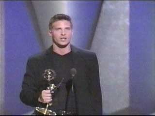 "Ah...(waving his arms to try and quiet the crowd) Stop! Shh! Ah, I'd like to thank God, my mom, my dad, my beautiful fiancee who I love more than anything in the world, General Hospital, wonderful cast; Sarah Brown, Kimberly McCullough, Ron Hale, Tony Geary, Maurice Benard; John Homa, I love you, ABC, Wendy Riche, Elizabeth Courty, Bob Guza, Mark Teschner, Jeff Ballard, Jim Warren, thank you, I LOVE YOU!!!"