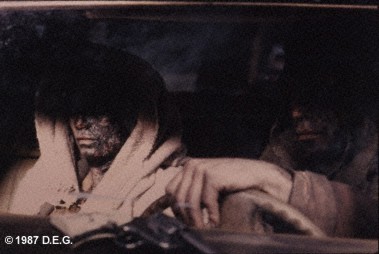 Driving the van into the bungalow, he aides them in escaping, earning their respect. But it is at the Godspeed motel where they end up meeting with Caleb's father Loy (Tim Thomerson) and sister Sarah (Marcie Leeds), who had been searching for him this whole time. Faced with a choice, Caleb choses his family, and escapes to their car. Explaining the situation as best he could to his father, he begs for transfusion, to which dad, skilled veterinarian that he is, obliges. Transfusion having worked (God knows why), one night he discovers Mae outside of his home, and tells her of what's happened. Realizing later that Mae was a distraction and that the nomads had kidnapped Sarah at the bidding of Homer, who had developed a crush on her, he goes after them on horseback. Confronting Severen, he proceeds to run him over with a tractor trailer. That not working, he then jackknifes the trailer using the knowledge he gained from the Cajun truck driver, blowing Severen into the next century (or the bushes, whatever). Next, Jesse and Diamondback try their hand at it, only to have Mae avert it, an act of which Jesse clearly did not approve. Mae finally rescues Sarah at great risk to herself, jumping out of a moving car into broad daylight. Homer, following her, burns up in the process, as do Jesse and Diamondback (miraculously, Mae did not). Caleb, returning home with Sarah and Mae, tranfuses Mae, so that she too, may walk freely during the day. They hug, and the story ends abruptly. What
