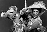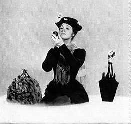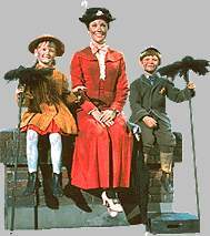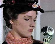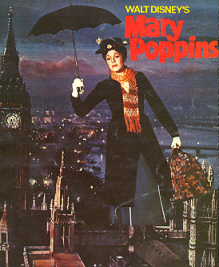 We first see Mary Poppins sitting up on a cloud, powdering her nose.