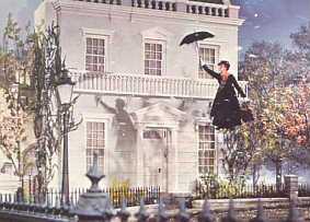 After the call for "The Perfect Nanny" from Jane and Michael Banks, Mary flies down from the sky to the home of the Banks family.