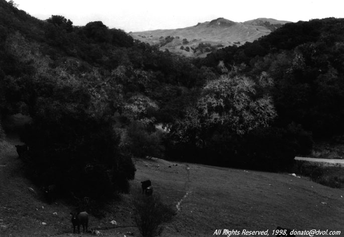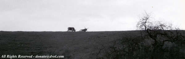 There was the sound of a gentle wind (on this particular day, it was very gentle). It was rustling the grasses and selectively placed trees. I heard the sound of an animal from the other side of one of the hills. Its source I could not see, but I assume it was a bull, or some sort of large four-legged mammal with giant horns.