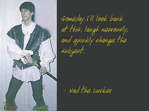 Ok, So this pic may be a little old, But as I haven't Changed Much since it was taken, I guess it's still usuable. This is what Nad the Lurker looks like, in case you were wonderin'. |