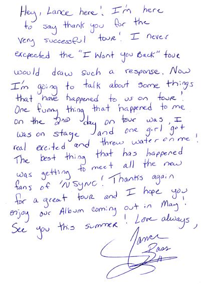 Letters from *NSYNC to web-surfers!