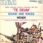 A) "Sound and voices" - G. & M. De Angelis  (3:05) B) "Wendy" - G. & M. De Angelis    (2:38) RCA - OC 30 1973 / Italy   ![]() ![]() Original soundtrack from "Te deum" |