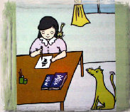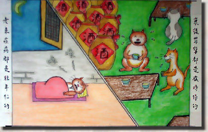 就在我作畫的此時,貓女明心和狗 女開心也陪伴在身旁,我們就像一 家人那樣的生活在一起--眾生平 等,皆有佛性是真的啊!