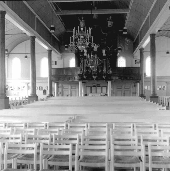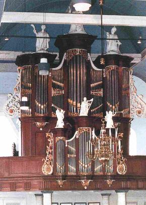 De gipsen beelden, welke het orgel sieren, stellen: "Geloof, Hoop en Liefde" voor.Het orgel werd in 1843 gebouwd door J.C. Schreur en Zn. uit Zwolle, met oorspronkelijk 20 stemmen en aangehangen pedaal. Erg best was het niet, want in 1861 werd de her P. van Oekele en Zn. gevraagd het orgel te vergroten en er een "vrij pedaal" met 5 stemmen aan te maken. Omdat het mechaniek door vele "restauraties" niet meer in de oorspronkelijke staat was te brengen, werd dit geheel vernieuwd, terwijl tongwerkkoppen uit dezelfde bouwperiode werden gebruikt, omdat de oorspronkelijke koppen onherstelbaar waren vernield.