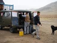 To travel in Mongolia is easy… if you have stacks of money! The most convenient is to hire a jeep (driver & petrol included) for a min US$80/day. Or, you can sign up for the many packaged tours on offer, for even more money. Otherwise, you had better have plenty of time and patience, as we were soon to discover.